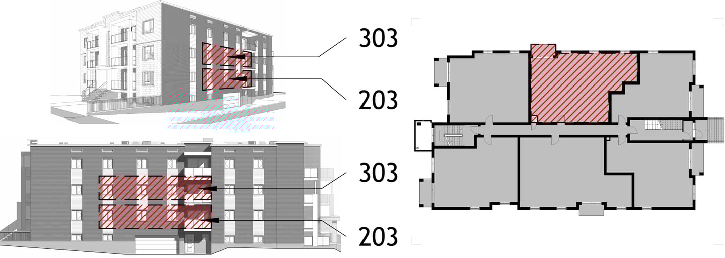 Des ajustements peuvent survenir en cours de construction en raison de contraintes techniques ou d’imprévus hors de notre contrôle (par exemple : l’impossibilité d’installer certains éléments à l’endroit prévu en raison de la structure, comme la présence de pieux).